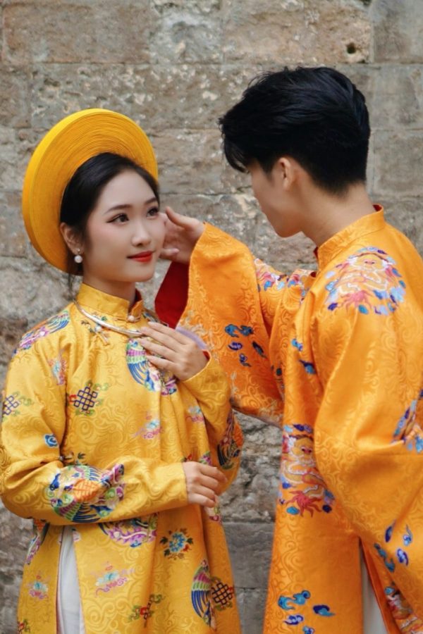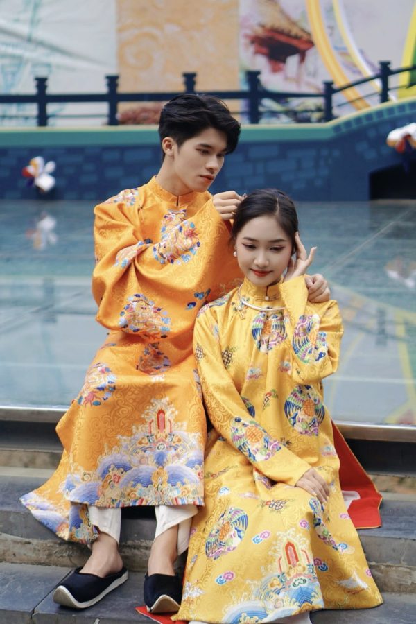 MÃ THUÊ G2-G11: ÁO TAY CHẼN PHƯỢNG BÀO MÀU CAM – ÁO TẤC ĐOÀN LONG MÀU VÀNG CAM