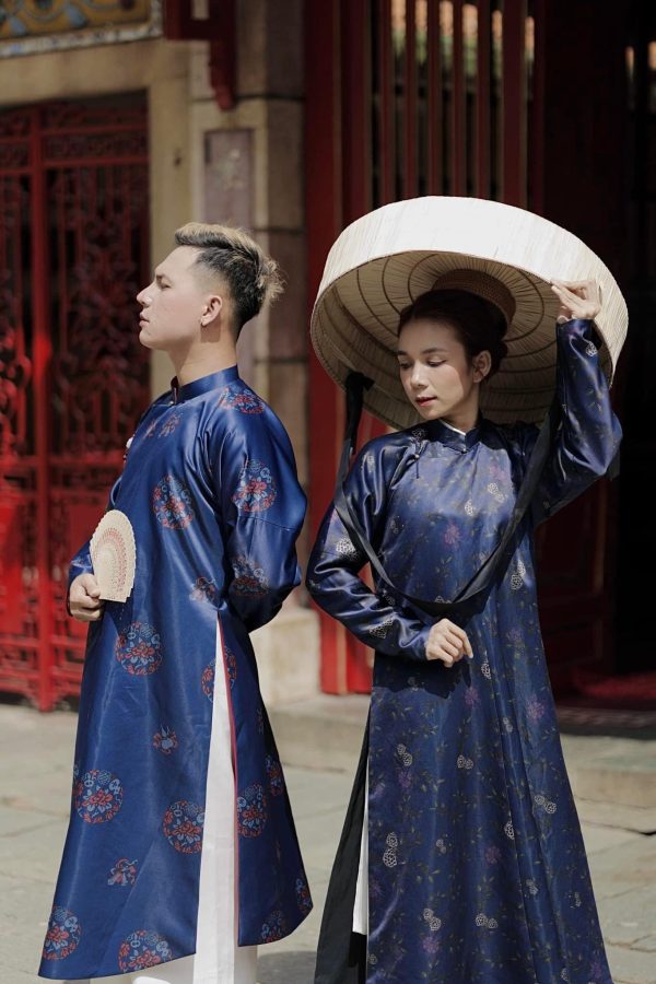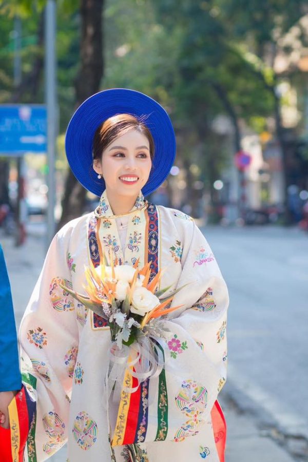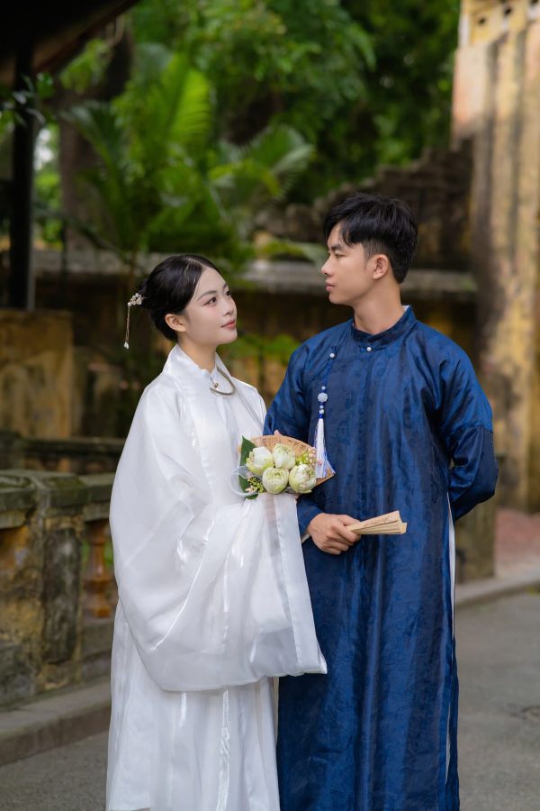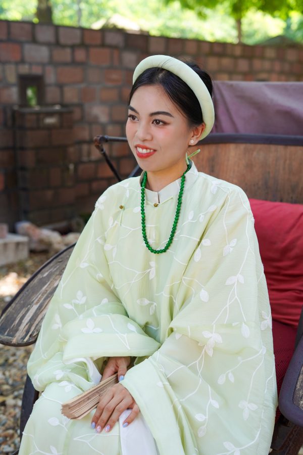 MÃ THUÊ NB8-G10 : NHẬT BÌNH XANH – ÁO TẤC GẤM IN TRẮNG HOA VĂN