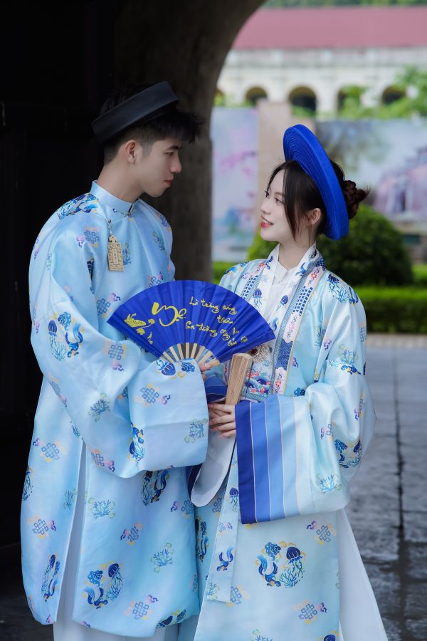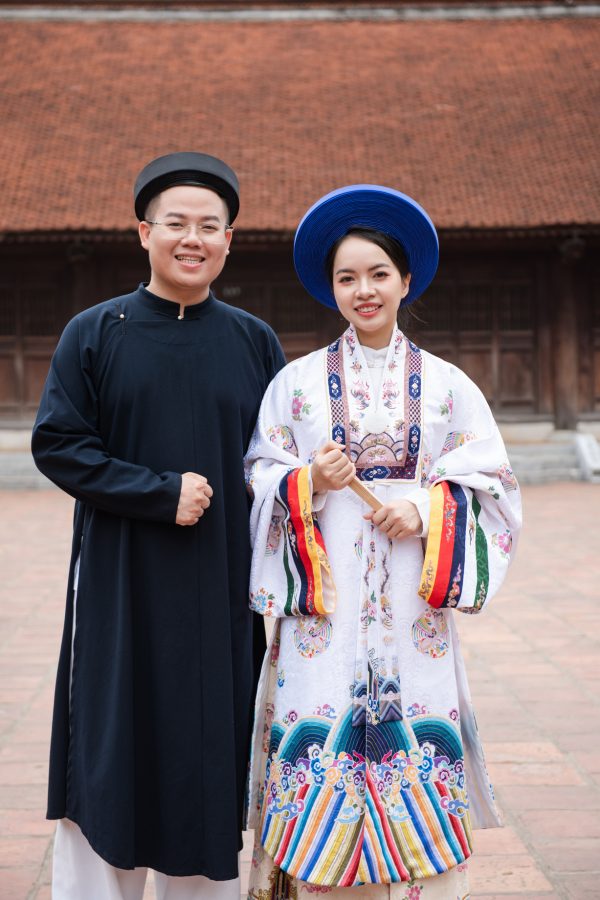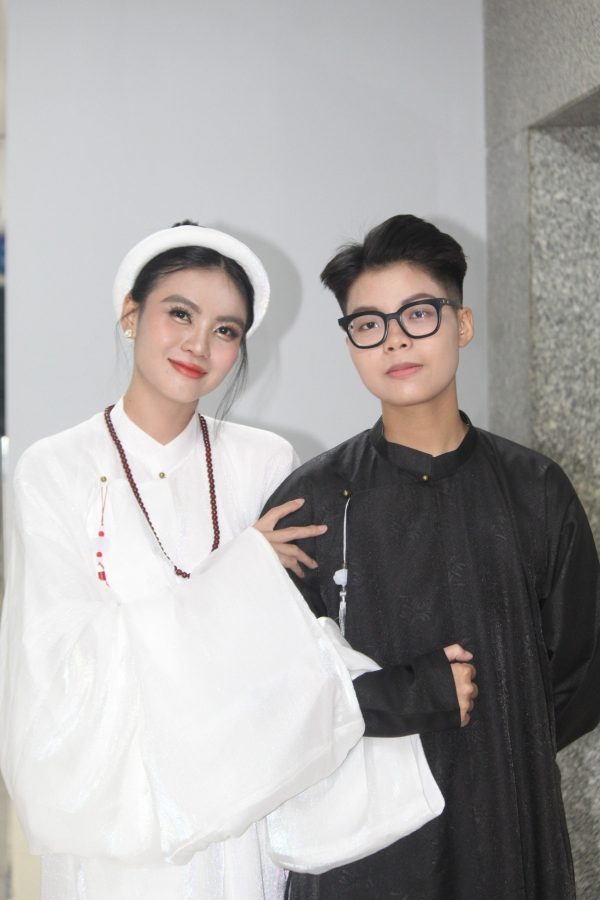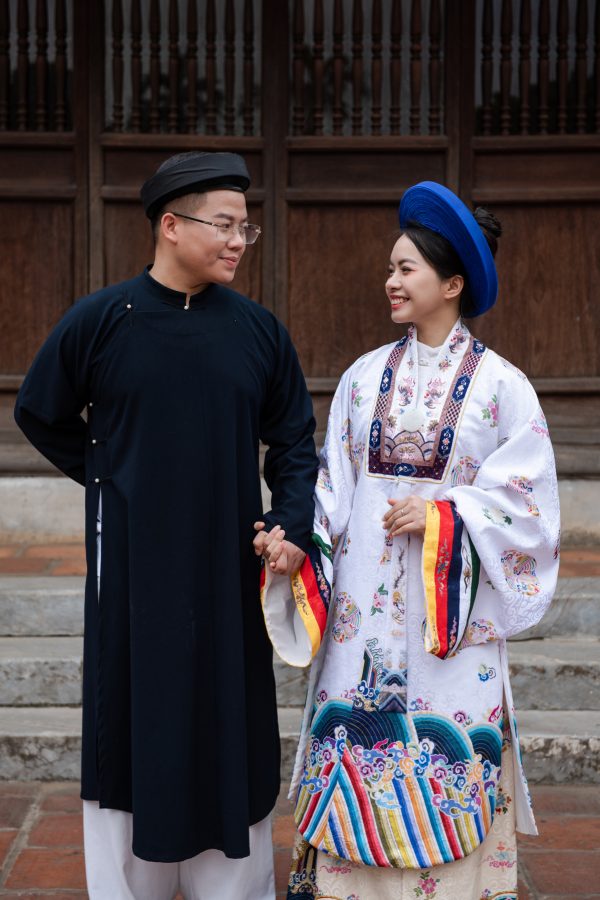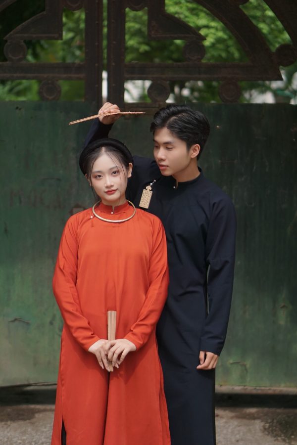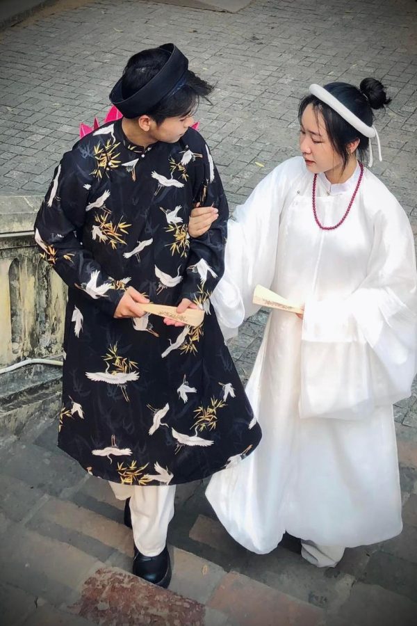 MÃ THUÊ A71-B37: ÁO TẤC XƯỚC KIM TRẮNG LÓT TRẮNG – ÁO TAY CHẼN TƠ HOA CÚC ĐEN LÓT ĐEN