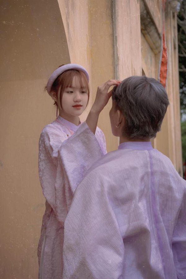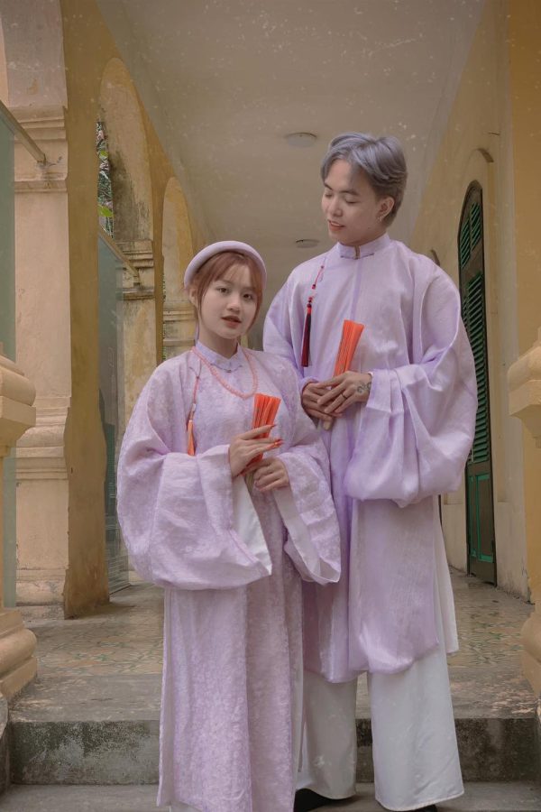 MÃ THUÊ A49-A50: ÁO TẤC HOA NHÍ TÍM NHẠT – ÁO TẤC XƯỚC KIM TÍM NHẠT