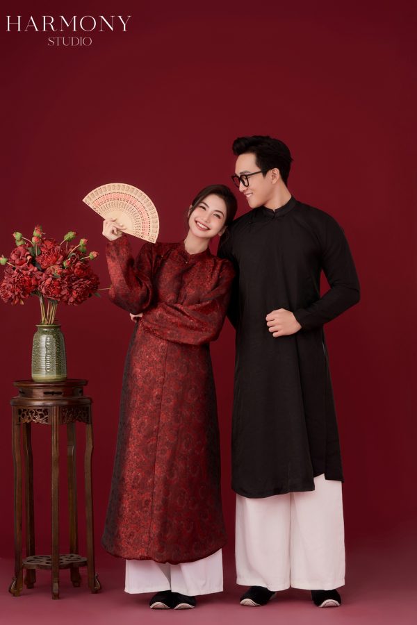 MÃ THUÊ G32-B37: ÁO TAY CHẼN GẤM NHŨ ĐỎ ĐEN – ÁO TAY CHẼN TƠ HOA CÚC ĐEN LÓT ĐEN