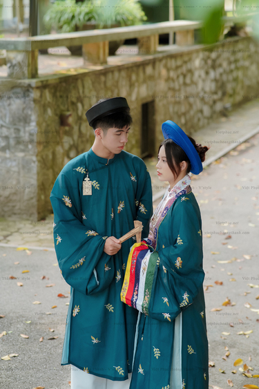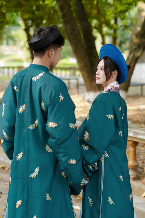 MÃ NB25-A134: NHẬT BÌNH TƠ XANH CỔ VỊT THÊU HOA – ÁO TẤC TƠ XANH CỔ VỊT THÊU HOA LÁ
