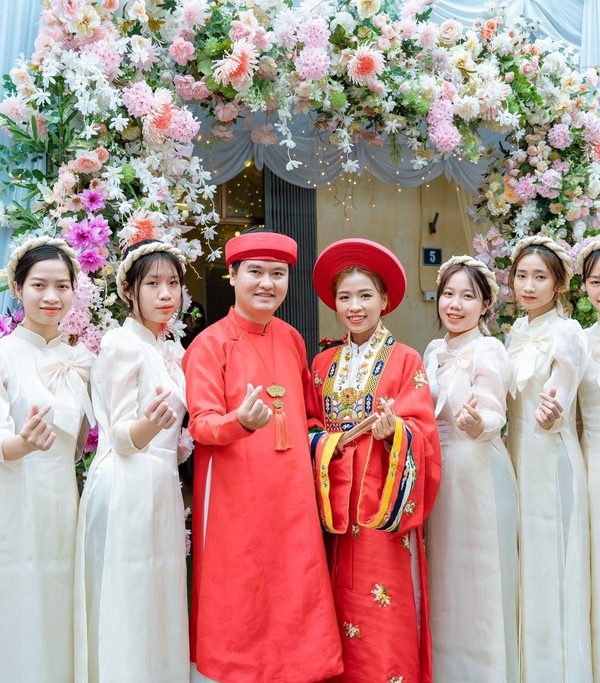 MÃ THUÊ NBT5-G51 (G52): NHẬT BÌNH TAFTA NHŨ ĐỎ ĐÔ THÊU HOA – ÁO TAY CHẼN DỆT BÁT BỬU ĐỎ