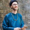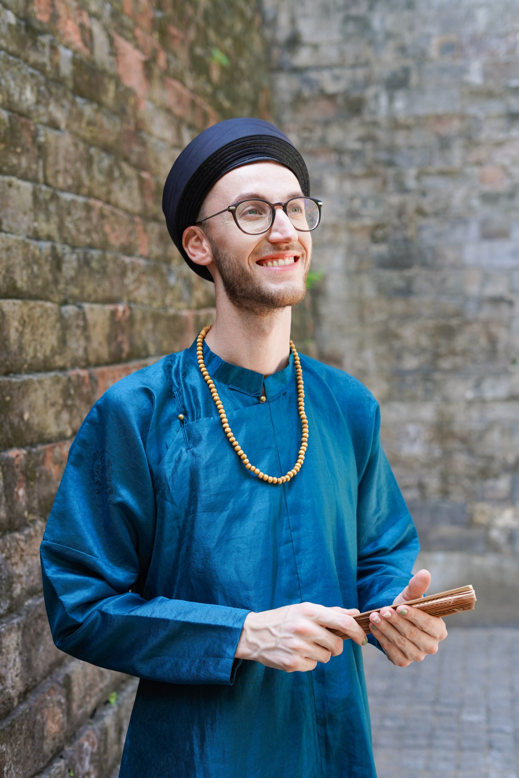 – Áo Ngũ thân tay chẽn vải sa hàn xanh cổ vịt lót đen