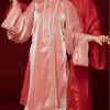 – Áo Tấc vải tơ xước kim màu hồng lót đỏ