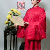 – Áo Ngũ thân tay chẽn vải gấm hoa màu đỏ lót trắng