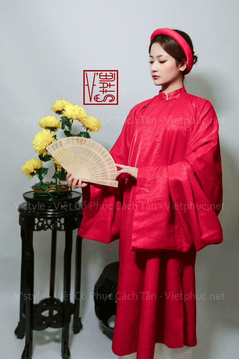 – Áo Tấc vải tơ hoa cúc màu đỏ tươi lót đỏ.