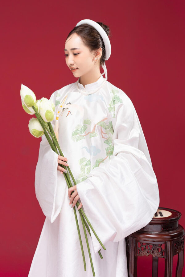 – Áo Tấc vải sa hàn màu trắng lót trắng in hoa văn tiên cảnh