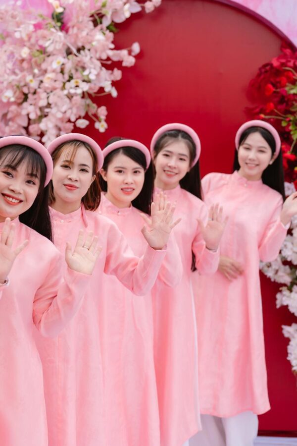 – Áo Ngũ thân tay chẽn vải sa hàn màu hồng cam lót trắng