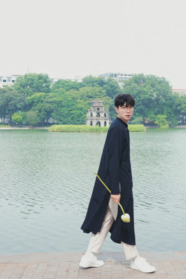 – Áo Ngũ thân tay chẽn vải đũi màu xanh than đen