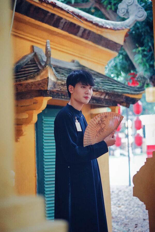 – Áo Ngũ thân tay chẽn vải đũi màu xanh than đen