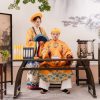 – Áo Tấc Đoàn Long màu vàng cam vải gấm in hoa văn chìm