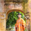 – Áo Tấc Đoàn Long màu vàng cam vải gấm in hoa văn chìm