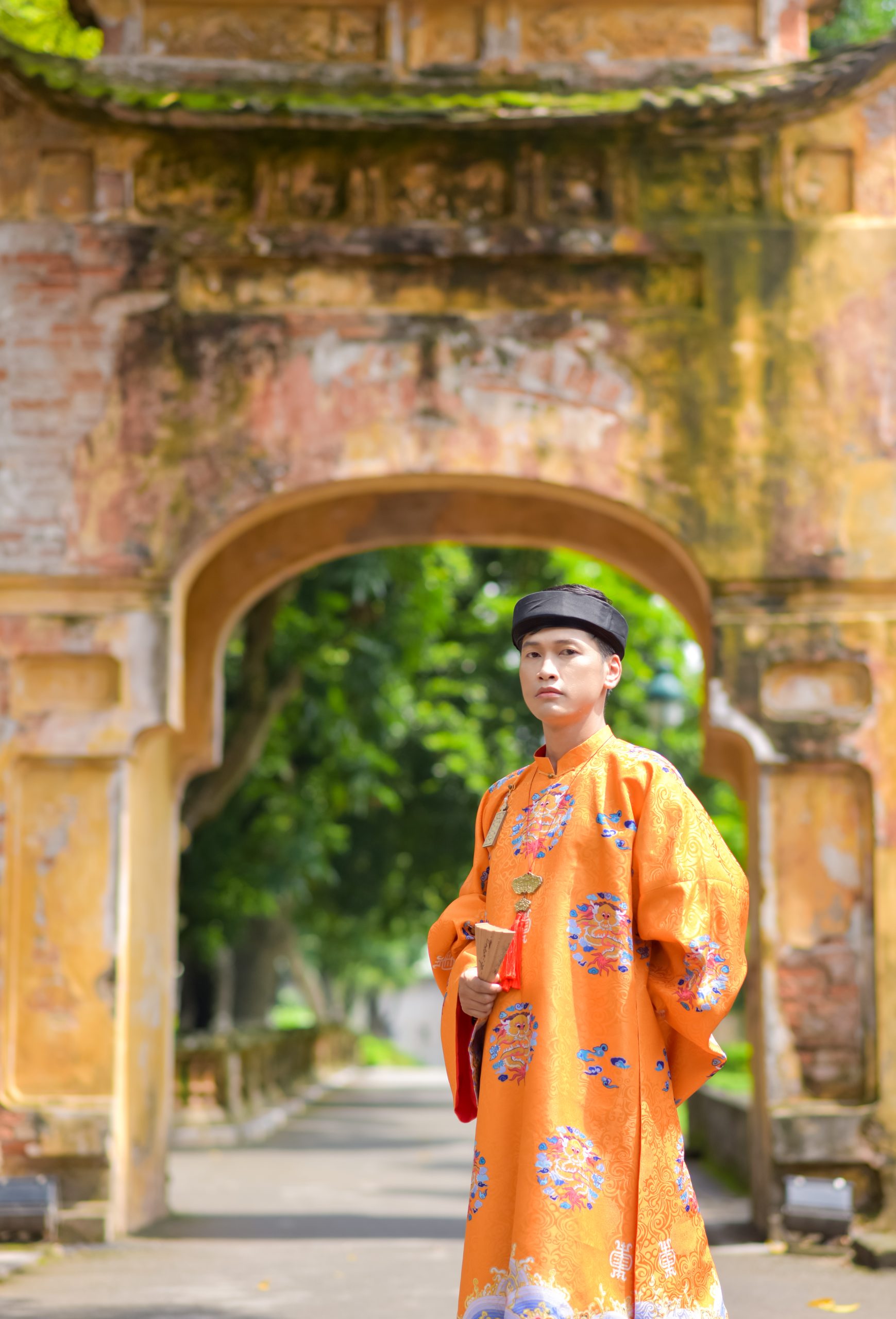 2. Mã sản phẩm: G11: Fullset áo Tấc Đoàn Long màu cam cho nam