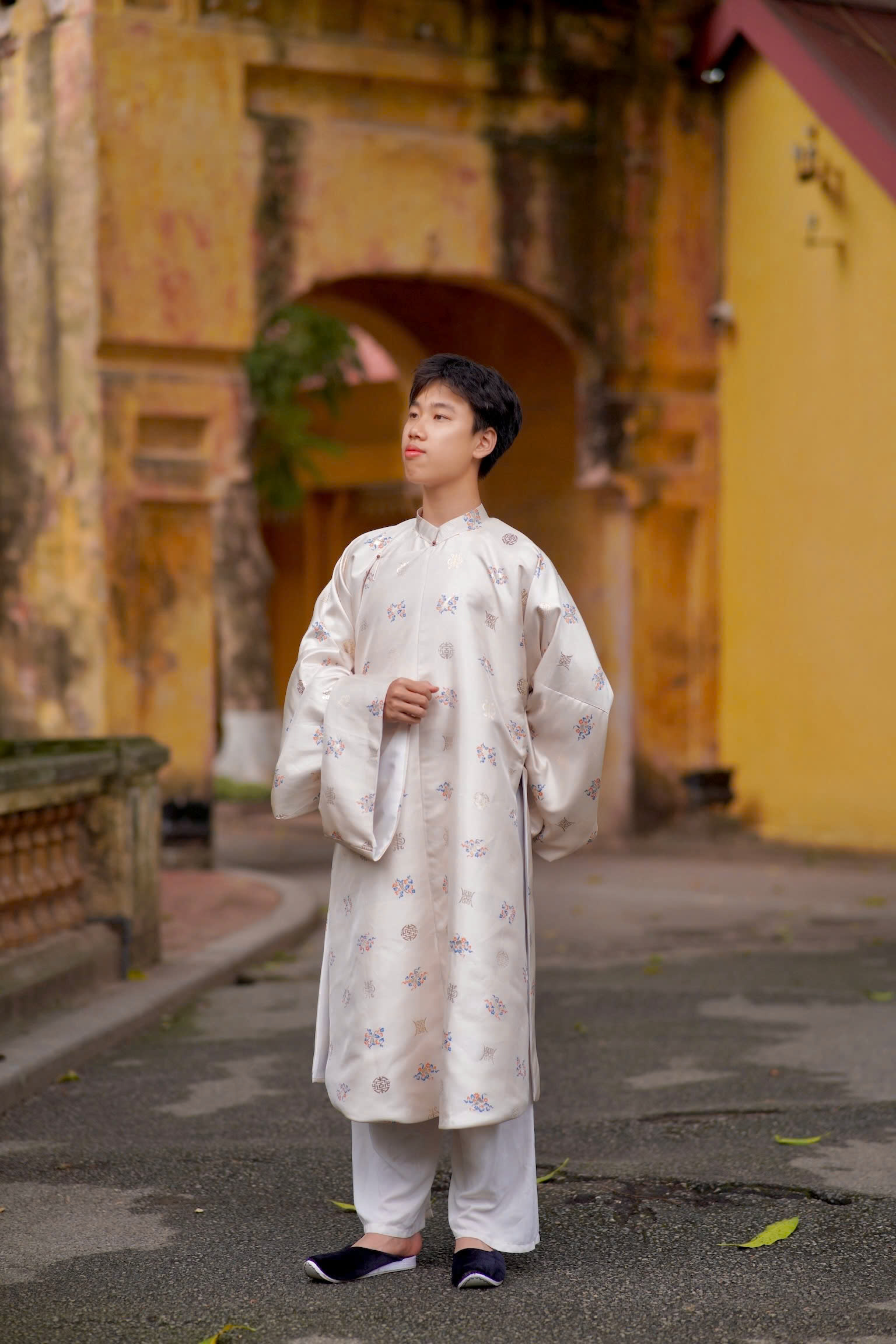 – Áo Nhật bình vải dệt bát bửu be – cổ dệt lý ngư với hoa văn thiết kế độc quyền, concept đặc biệt, trên chất vải sang trọng