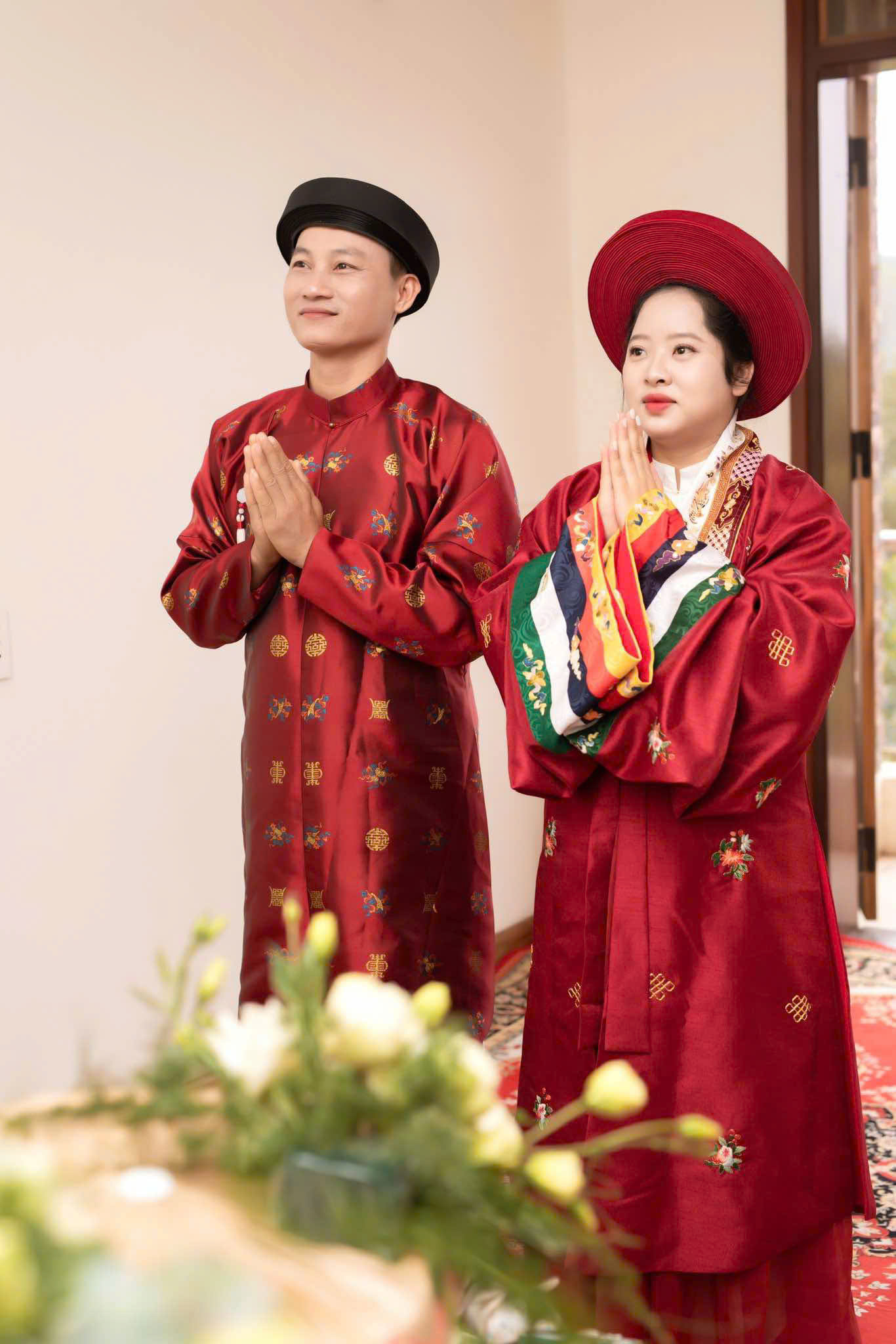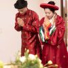 MÃ THUÊ NBT5-G51 (G52): NHẬT BÌNH TAFTA NHŨ ĐỎ ĐÔ THÊU HOA – ÁO TAY CHẼN DỆT BÁT BỬU ĐỎ