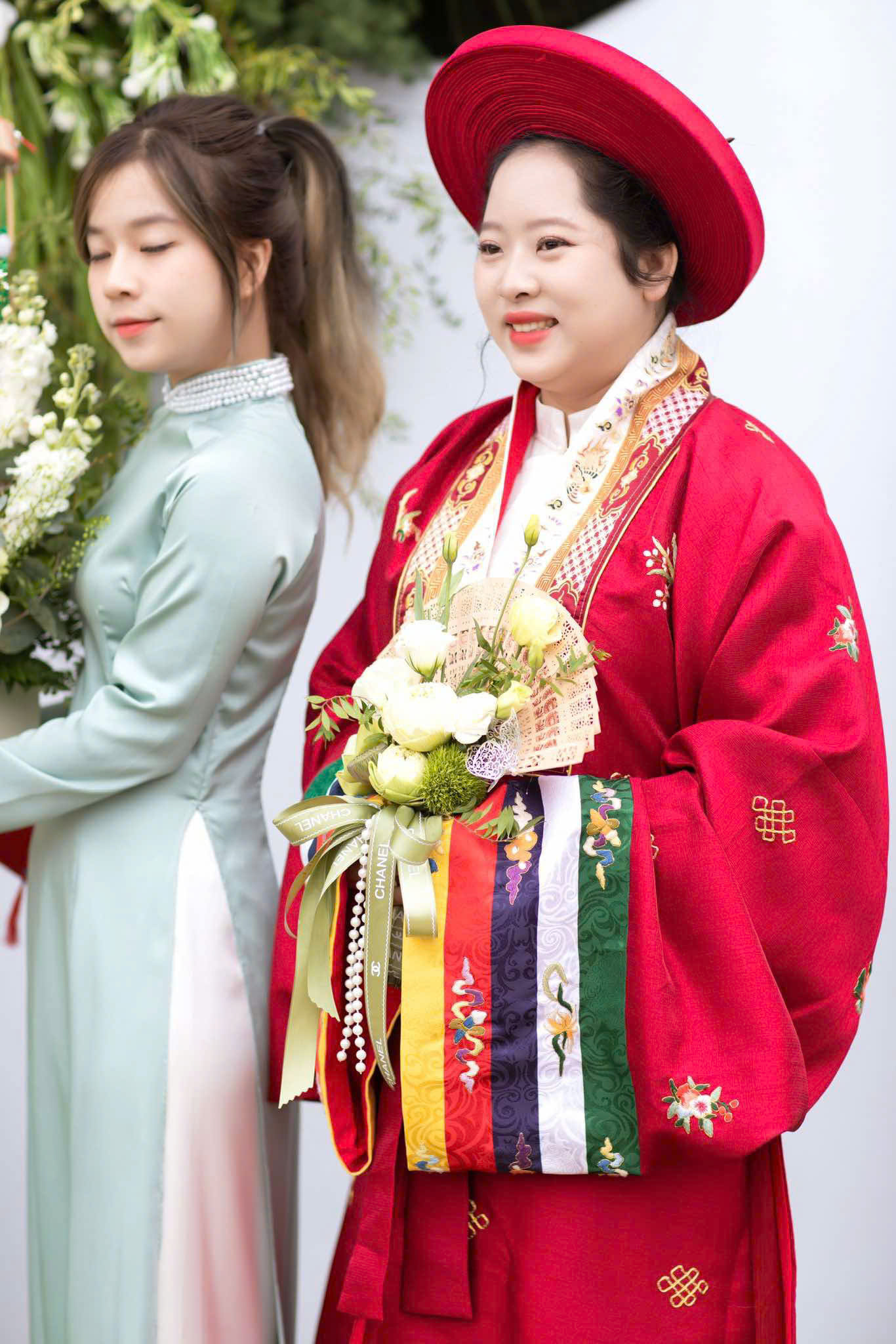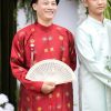 – Áo Nhật Bình tafta nhũ màu đỏ đô blink, thêu họa tiết cực kỳ sang trọng